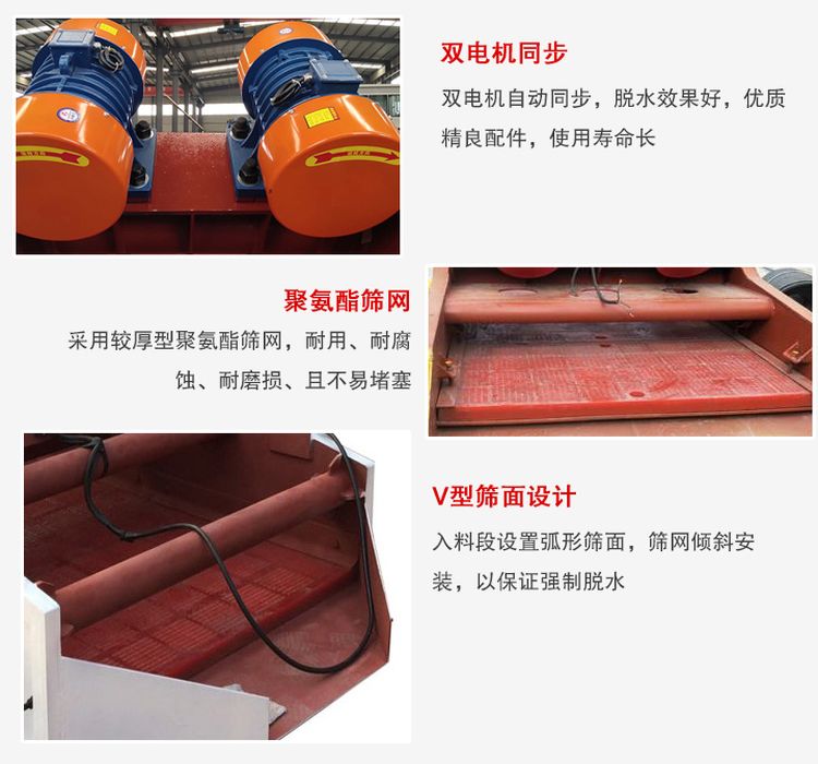 脱水筛又称高频脱水筛,通过激振力改变了矿浆表面的水张力,浆水透过筛网成为筛下物,而微细物料被筛网阻隔形成滤层受振动力影响向前运动排出。脱水筛主要用于选矿行业的尾矿脱水、选煤厂的煤泥脱水、水洗石英砂脱水和陶瓷泥浆脱水,以及电力、制糖、制盐等工业部门对中细颗粒物料进行干湿式分级、脱水、脱介和脱泥。